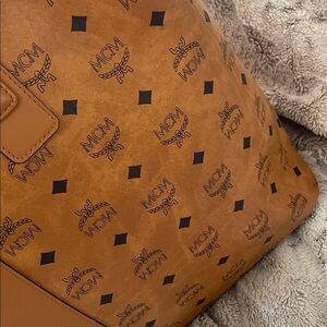 Stylish MCM tote with signature logo pattern. Rich brown color. Spacious and chic. Please see marks on dust bag, thank you.