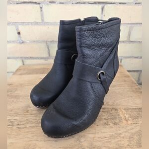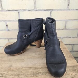 Sanita wood and leather clog ankle boots.