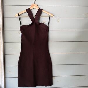 Babaton Sculpt Knit Cross Dress – Coffee Bean Brown (Size M)