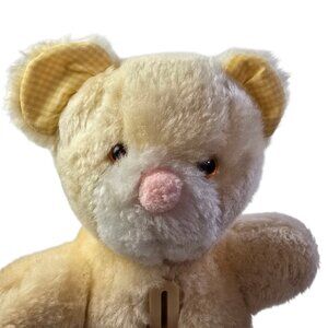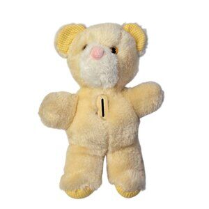 Vintage Hallmark Teddy Bear Bank Yellow Plush Gingham 1982 Baby Nursery Decor