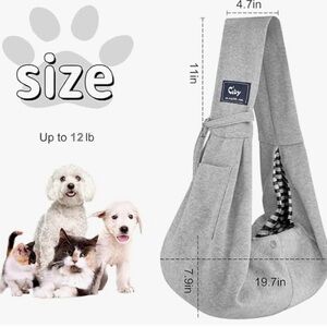 Comfortable gray pet sling carrier with adjustable strap. Ideal for small pets. For small dogs up to 12 lbs.