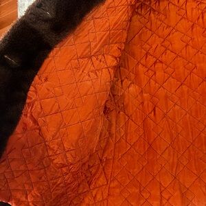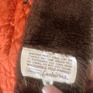 Vintage Sears Women's Brown Teddy Jacket with Orange Lining (Faux Fur)