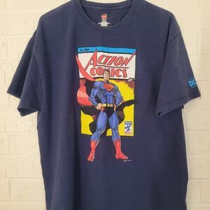 picturing 90’s blue superman comic book tee