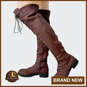 Brand new and flawless, these over-the-knee combat boots deliver a stylish and supportive look perfect for fall and winter seasons. The lace-up design with adjustable straps ensures a personalized, comfortable fit.