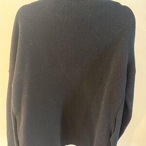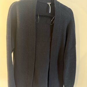 Stay warm and stylish with this classic black open-front sweater. Perfect for layering, this versatile piece is a must-have for any wardrobe.