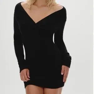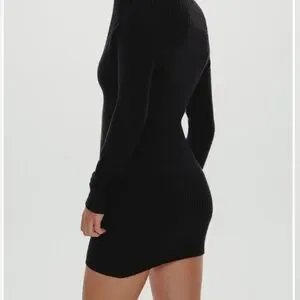Frankie’s Bikinis Jade Knit Mini Dress LS NWT S Black (OTR0054)