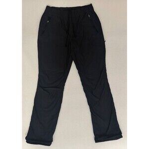 Comfortable and warm Eddie Bauer women's pants, perfect for fall and winter wear. Made with a stretchy nylon/spandex shell and soft polyester lining for warmth and comfort. Elastic waistband with drawstring, zippered pockets, and a clean, versatile black color that works for casual wear, travel, or outdoor activities.