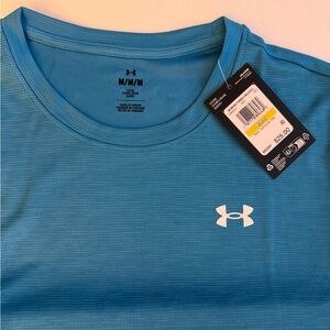 Light blue short sleeve tee. Features bold Under Armour logo. Ideal for casual wear.