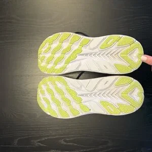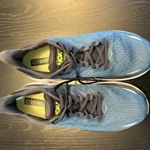 Excellent used condition. Barely worn. My husband tried these but ultimately preferred different Hokas. Comes from a smoke and pet free home. No box.