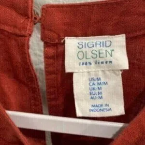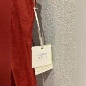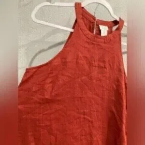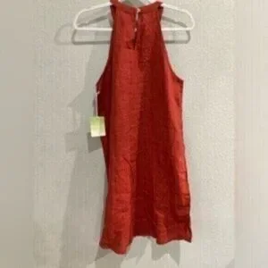 New Sigrid Olsen Linen Boho Mod Shabby Chic Easy To Wear Everyday Halter Dress Fall Rust Orange Red Color