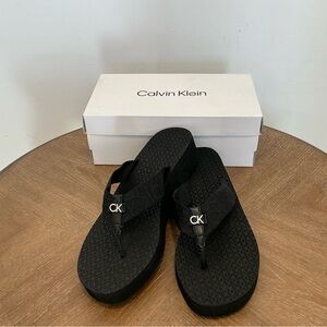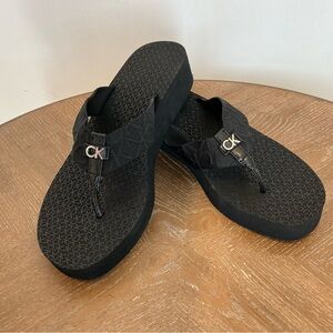 STYLE Calvin Klein puts its signature stamp on the Meena summer sandal with logo-print straps on a great mid eva wedge.