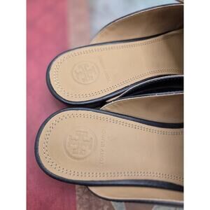 Tory Burch Amelia Backless Loafer Mule Flat Black Leather Size 6.5 Elegance