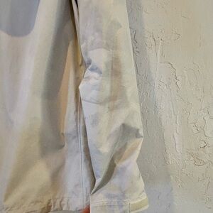 Self-fabric hook-and-loop cuff closures and an adjustable drawcord hem seal out precipitation
