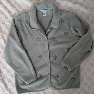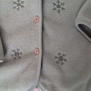 Cozy cardigan with snowflake pattern. Perfect for chilly days. Button closure for easy wear.
