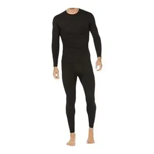 ThermaJohn Men's stretchy Thermal Longjohn set, crewneck top, and bottoms with elastic waist. Black XL