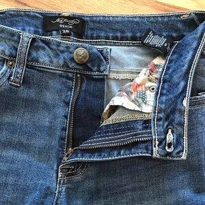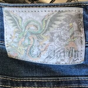 Ed Hardy denim jeans featuring the "New York City" eagle, snake, and skull embroidery