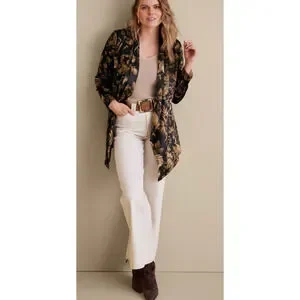 Soft Surroundings Shape Drape Faux Suede Jacket in Floral Multi