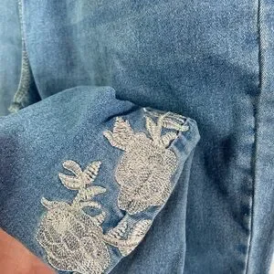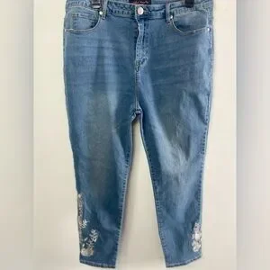 Elevate your casual style with these blue cropped jeans featuring delicate floral embroidery. Perfect for any occasion.