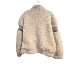 Forever 21 | Off-White Sherpa Lined Vintage Pastel Rainbow Stripe Coat | Sz L