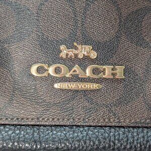 So many little extras in this handbag with adjustable/removeable crossbody strap. Top quality Coach with marbled brown and black handles and strap, gold-metal hang tag, gold-metal Coach + horse and carriage insignia, soft leather, and more! Excellent condition bag with no call outs! A fabulous, beautiful Coach!