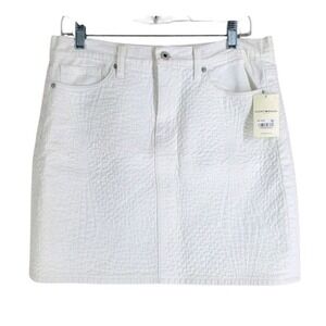 Lucky Brand Quilted Denim Skirt Sz 12 /31 Ivory White Summer Casual NWT