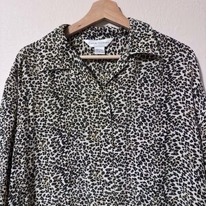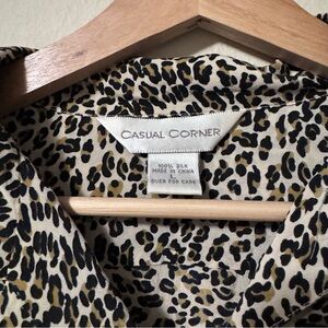 Vintage Casual Corner animal print 100% silk button down blouse Size Large
