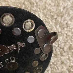 Statement belt brand is NOCONA black with turquoise Concho detail very adjustable. EUC.