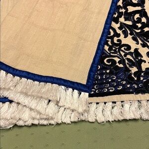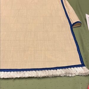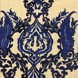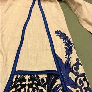 This chic long sleeve dress features stunning blue embroidery on a tan fabric, offering a stylish and sophisticated look for any occasion.100%cotton and embroidered.