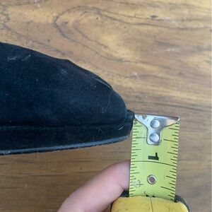 These shoes have seen a few weddings with wear and a missing heel. Perfect if you have a good cobbler to do a quick fix. Uppers are suede with some wear as shown in photos