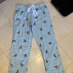 Charming pajama pants with playful labradoodle pattern. Features a white drawstring