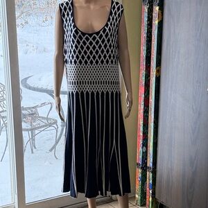 Elegant Midi Navy and White Sleeveless Knit Dress, New with Tags 14/16
