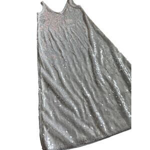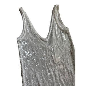 Zara Sleeveless V Neck Sequined Maxi Dress White Size XS
