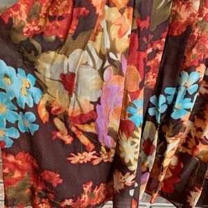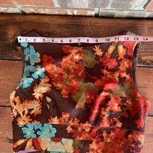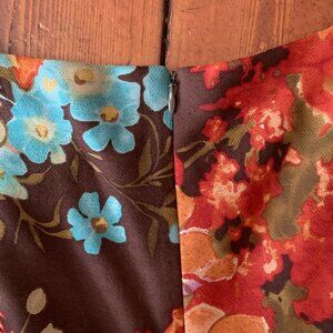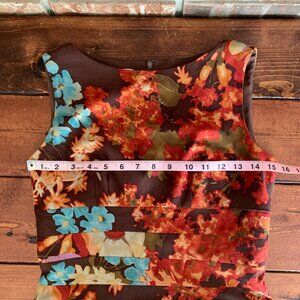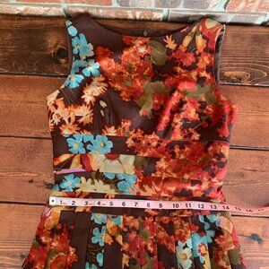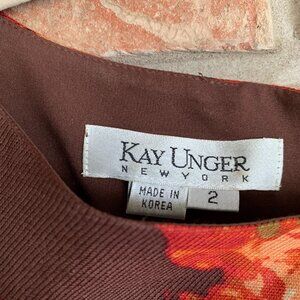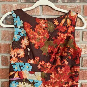 Kay Unger Women's Floral Brown Silk Wool Blend 2 Pleated Midi A-Line Dress GUC
