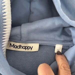Madhappy Light Blue Hoodie with pastel letters and white stitching