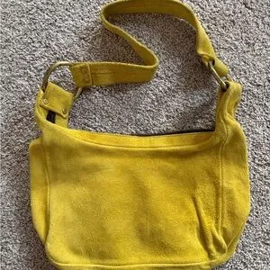 Y2K suede shoulder bag! Brighten your look with this stylish yellow suede shoulder bag. Perfect for any occasion.