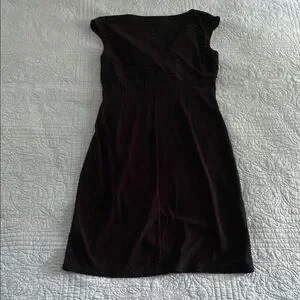 Elegant black midi dress with a flattering silhouette. Perfect for any occasion. Faux wrap style. Measures 18” across chest, 12” shoulders to underbust, 14.5” waist, and 39” shoulder to hem.