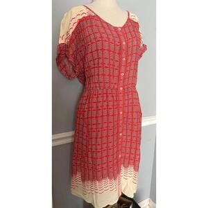 Anthropology Vintage Look Red and Cream Button-Front Dress