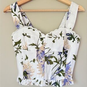 NEW Reformation Anatolia Linen Corset Two Piece Serenity White Floral US 2 UK 6