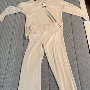 Free People Beige Button-Up Pajama set