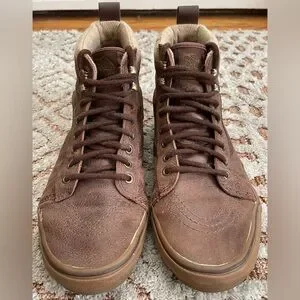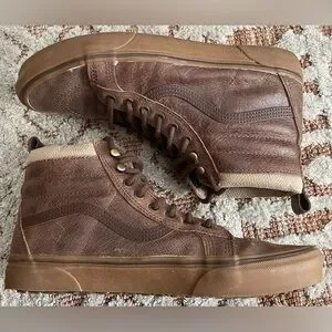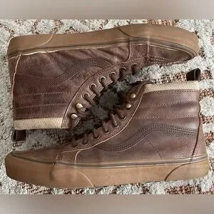 Gently used, Vans SK8 Hi Top Sneakers. Water resistant Brown leather.