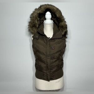 RUEHL NO. 925 Down Abercrombie Faux Fur Hood Sz S Brown Crop Puffer Vest Y2K VTG