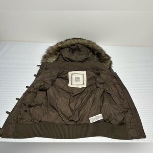 DESCRIPTION: Vintage Y2K Ruehl No. 925 Abercrombie Brown Down Insulated Crop Puffer Vest Women's Small (please see measurements below to ensure a proper fit). Features removable faux fur hood, a full zip front with button closure and 2 lower front snap button pockets. This vest is in very good pre-owned condition with normal wear. A few light blemishes here and there but not bad considering age!