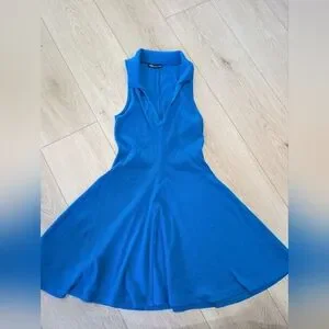 Zara cobalt blue collared V-neck ribbed sleeveless fit and flare mini dress. Size M