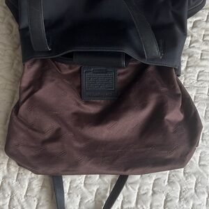 Coach Twill Nylon Purse (Model #7402). Black shoulder bag made from durable nylon twill with black leather trim and straps.