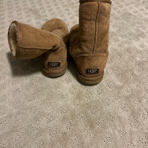 Soft tan boots with cozy sheepskin lining. Perfect for warmth and comfort.