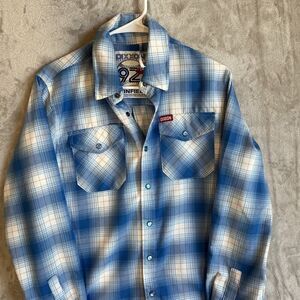 Dixxon Flannel Shirt Men's Extra Small Blue Plaid Dave Winfield Pearl Snap Jays