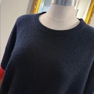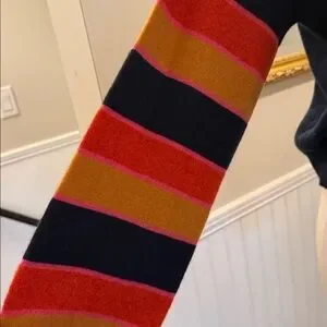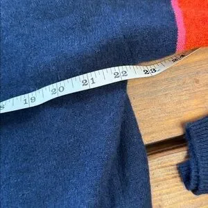 27 Miles navy 100% cashmere sweater with multicolored striped sleeves. Large