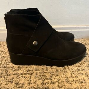 Eileen Fisher Tread Black Tumbled Nubuck Wedge Ankle Boots Size 6