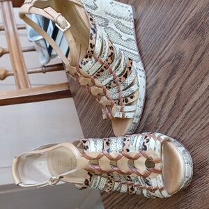 Cole Haan Air women’s Leather Animal Snakeskin print Wedge Sandal, 4.5" heel
