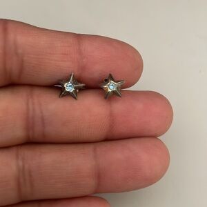 Beautiful tiny silver 925 star earrings with aquamarine stone/march birthstone,accept offers.